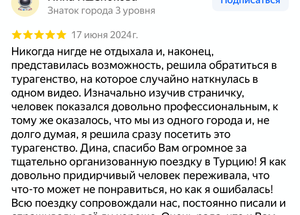 Мы с моей командой подбираем комфортные и продуманные туры под ваши предпочтения, работаем онлайн по всей России и сотрудничаем только с надежными туроператорами.